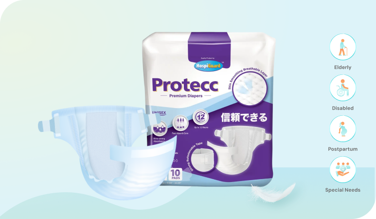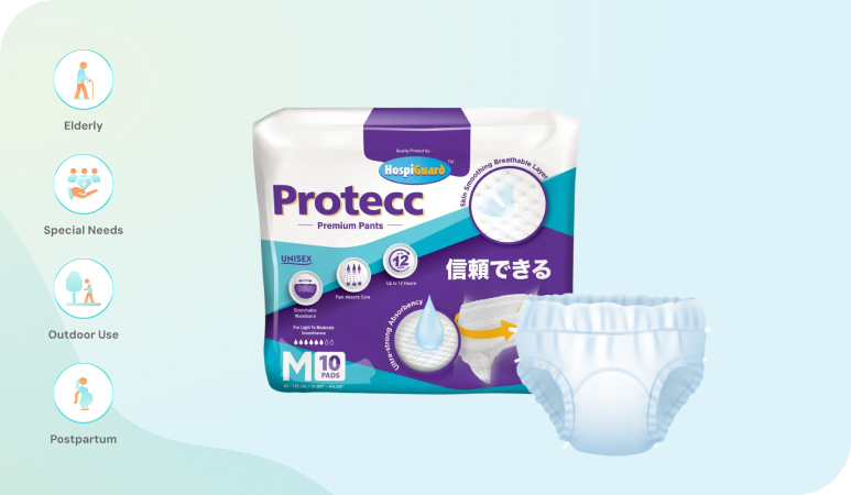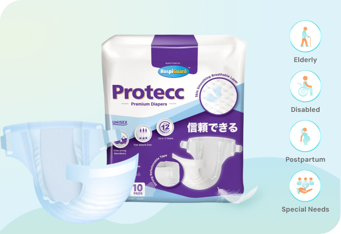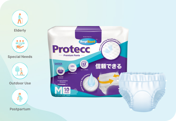 Designed for tender care. It absorbs moisture, protects mattresses/surfaces, and keeps users dry and comfortable. With absorbent gel beads, it may prevent additional leakage or stains on surfaces. Reliable choice for extra hygiene care.